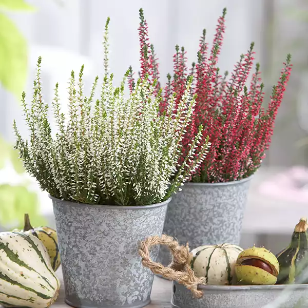 Die “echte” Erika dagegen ist die prächtige herbstblühende Topfheide (Erica gracilis), eine südafrikanische Art, die im Herbst häufig in Töpfen angeboten wird. Wegen ihrer großen, farbenprächtigen Blüten eignet sie sich hervorragend zum Bepflanzen bunter Herbstschalen oder Balkonkästen.