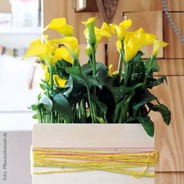Die Calla (Zantedeschia aethiopica) ist eine sehr elegante Pflanze. Vor allem in Weiß wirkt sie besonders vornehm. So bringt sie viel Klarheit in den Raum. Die Blütezeit der Zimmercalla beginnt bei uns im zeitigen Frühjahr. Das Farbspektrum des attraktiven Hochblatts unterscheidet sich je nach Züchtung. Von hellem Weiß und Creme über Gelb und Orange bis hin zu kräftigem Pink, Violett und Rot bis fast Schwarz ist alles dabei.